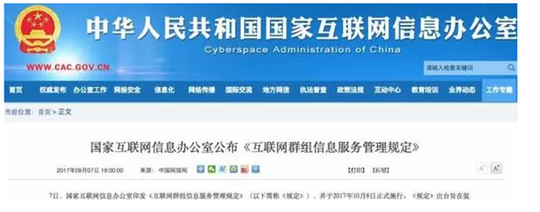 近日,国家互联网信息办公室印发《互联网群组信息服务管理规定》(以下简称《规定》)。国信办有关负责人答记者问时指出,《规定》所称互联网群组,是指如微信群、QQ群、微博群、贴吧群