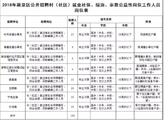 10日,颍泉区发布了招聘村(社区)就业社保、综治、宗教公益性岗位人员124人公告,符合条件的35周岁以下、高中及以上学历人员皆可报名。一招聘原则坚持公平、公正、竞争、择优,坚持统一组织、分工负责的原则